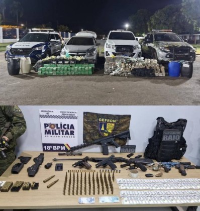 Dois homens foram presos em uma operação integrada em posse de um carregamento de entorpecentes e arsenal de armas em Pontes e Lacerda. A apreensão, avaliada em mais de R$ 8 milhões, aconteceu na quarta-feira (24).
