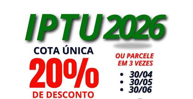 A Prefeitura de Nova Lacerda oferece aos contribuintes a oportunidade de garantir 20% de desconto ao pagar o IPTU 2026 em cota única. Para quem preferir parcelar, também é possível dividir o valor em até 3 vezes.